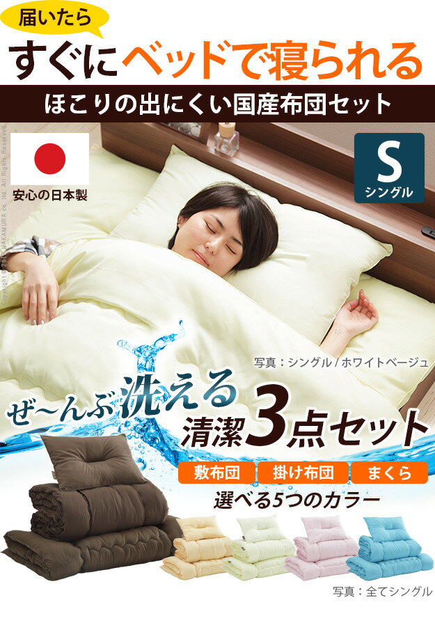 国産洗える布団3点セット(掛布団+敷布団+枕) シングルサイズ mu-42400001送料無料 北欧 モダン 家具 インテリア ナチュラル テイスト 新生活 オススメ おしゃれ 後払い